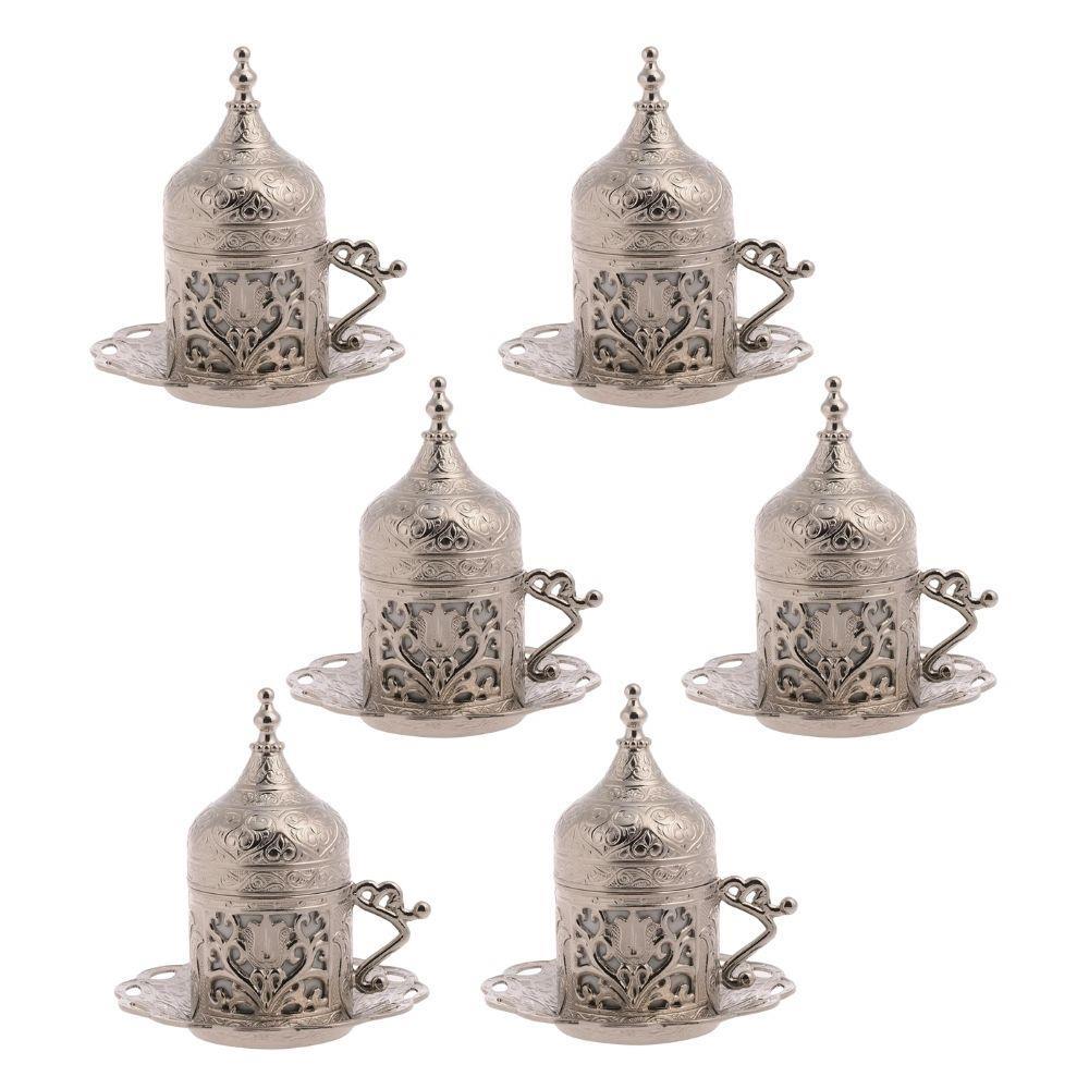 Osmanlı Kahve Fincanı Lale Nikel, özel lale deseni ve nikel kaplama detaylarıyla dikkat çeker. Zarif dış zarf ve tabak, yüksek kaliteli zamak malzemesinden üretilmiştir. Bu benzersiz tasarım, sofranıza estetik bir dokunuş katacak.