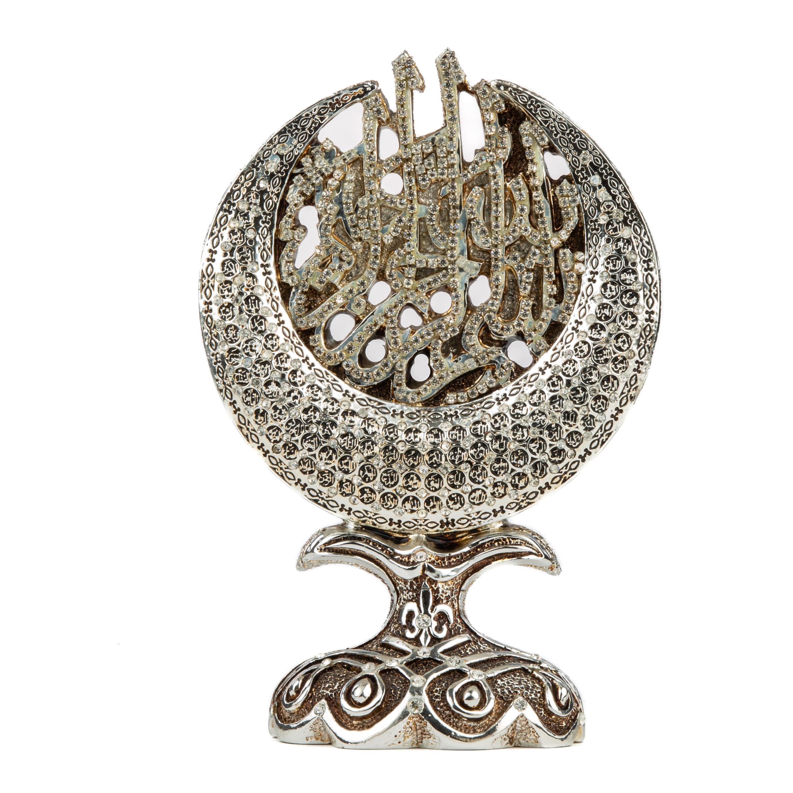 Ürün Açıklaması: Bu özel tasarım biblo, hem estetik hem de manevi değeri bir araya getirir. İslam sanatının sembolü olan hilal, Esma'ül Hüsna isimlerinin yansıtılmasıyla birlikte, bu bibloyu benzersiz kılar. Besmele ile tamamlanan tasarım, her anlamda özel bir objeyi ifade eder.