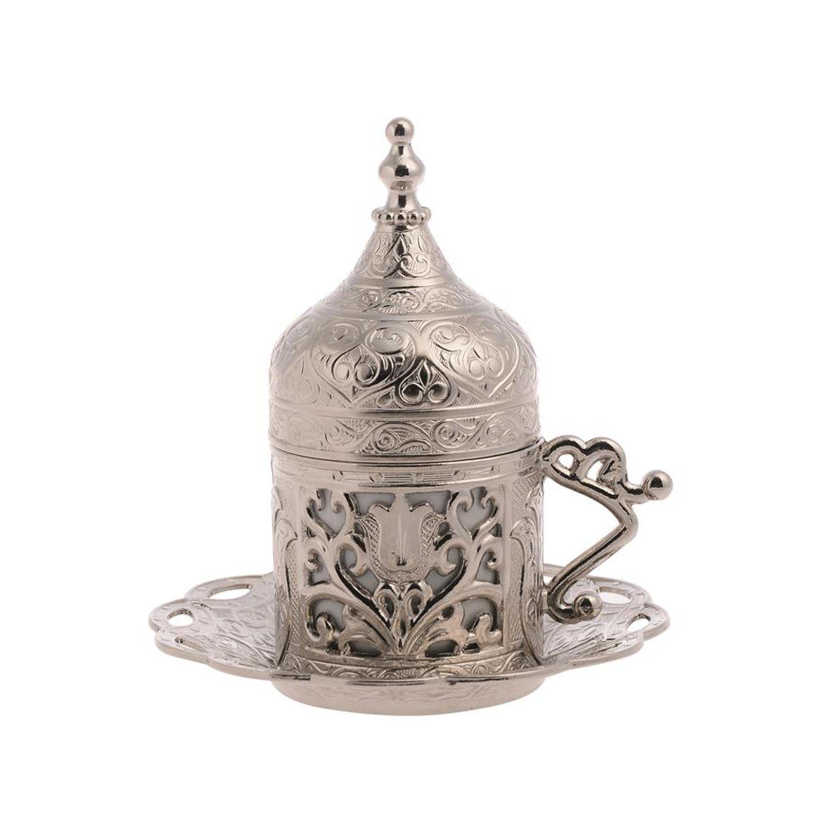 Osmanlı Kahve Fincanı Lale Nikel, özel lale deseni ve nikel kaplama detaylarıyla dikkat çeker. Zarif dış zarf ve tabak, yüksek kaliteli zamak malzemesinden üretilmiştir. Bu benzersiz tasarım, sofranıza estetik bir dokunuş katacak.