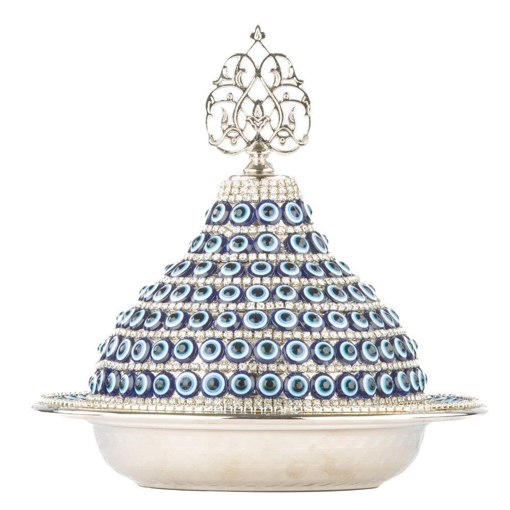 Saray Ottoman ile yaşamınıza lüks bir dokunuş eklemek için Nazar ve Swarovski Taşlı Şekerlik Drajelik Lokumluk Metal Kubbe Gümüş'ü şimdi satın alın