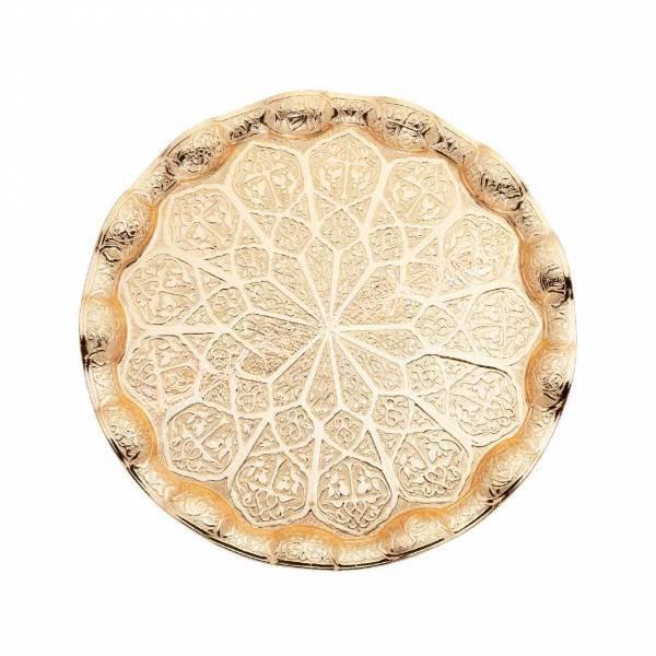 Sarı rengin canlılığıyla tasarlanmış yuvarlak ve dalgalı desenli bu büyük tepsinin zarafeti ve işlevselliği buluşuyor. Birinci sınıf malzemeden üretilmiş olup, her detay özenle işlenmiştir. Estetik ve dayanıklılığı bir arada sunan bu ürün, evinize keyifli bir dokunuş katmak için ideal. Malzemesi zamak dökümdendir.